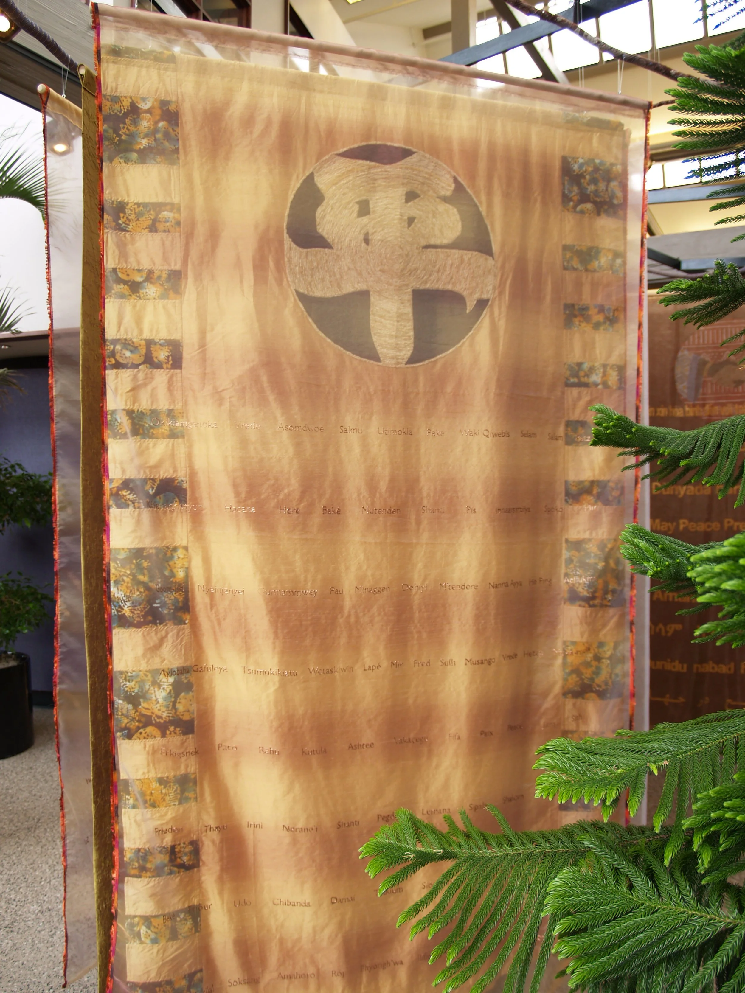 Merridee created the Illuminating Peace exhibit as a “dimensional vocabulary for peace”, a strategic counter-force to current violent conflicts taking place on our planet. In 2005 she began exploring other world cultures’ use of imagery and symbolism regarding “peace” and, then interpreted the essence of these discoveries into eight artistic fabric panels.